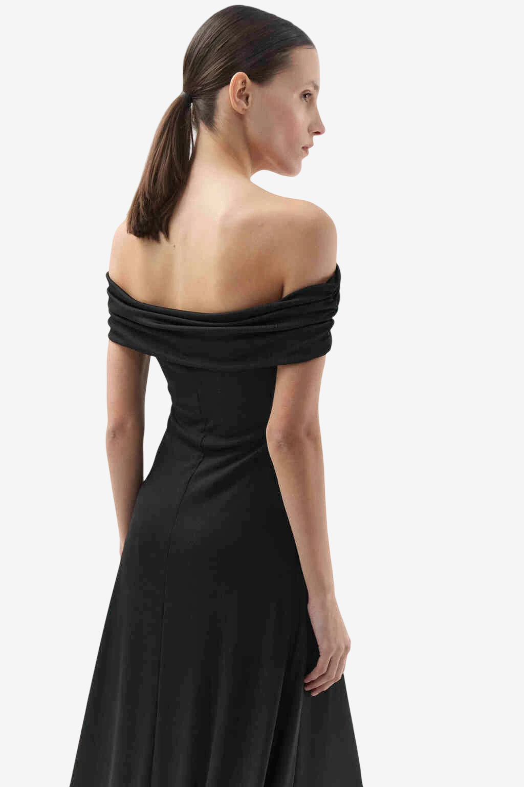 Vestido al cuerpo en la parte del torso y luego abre la falda semi evasé.